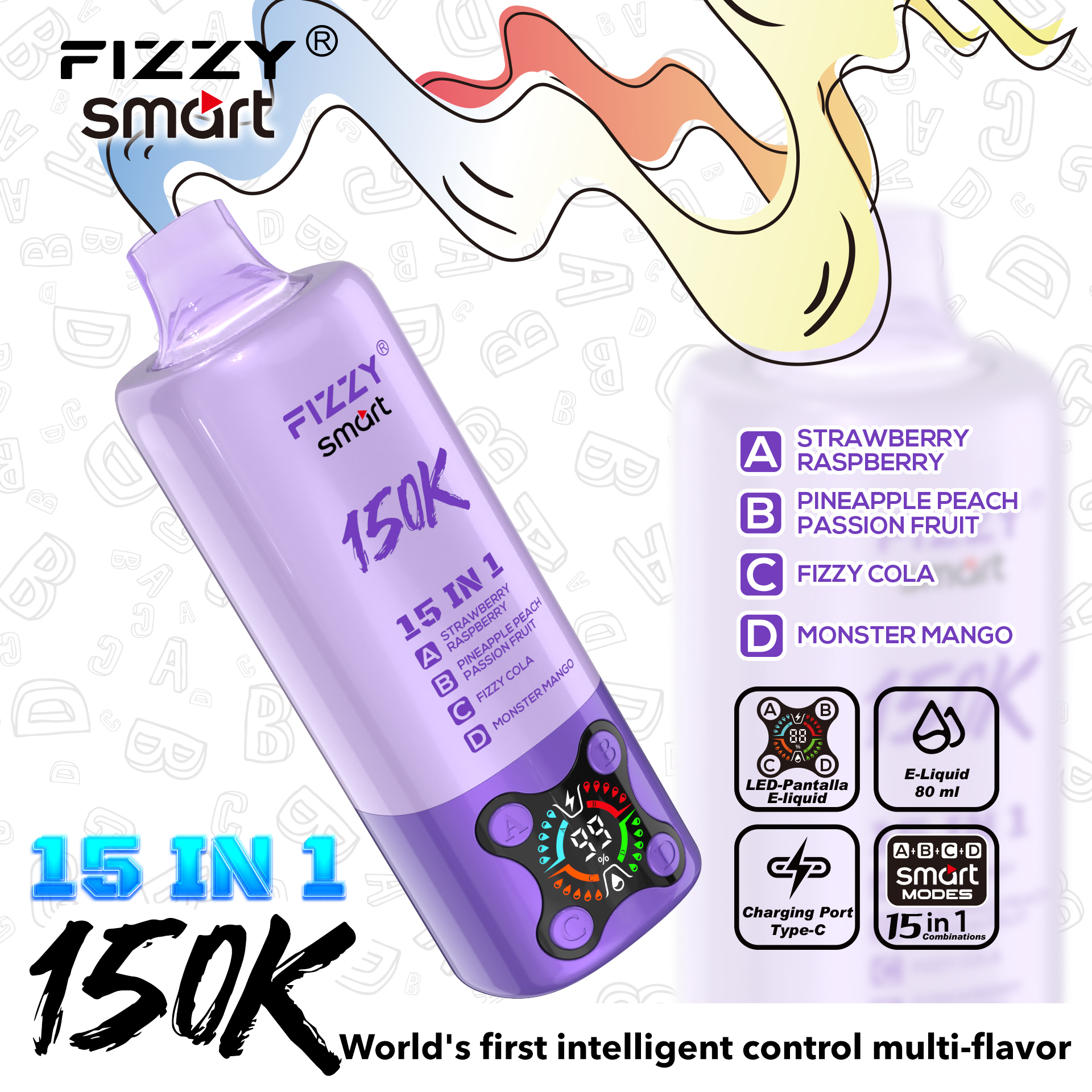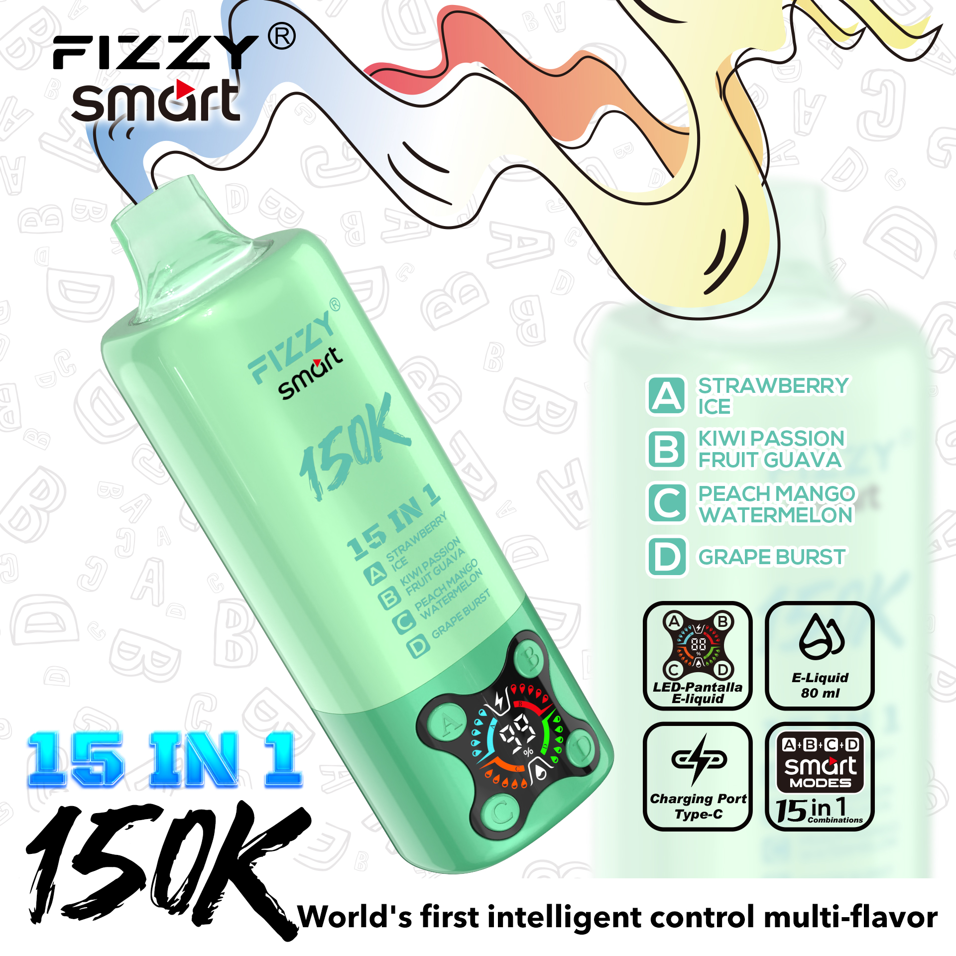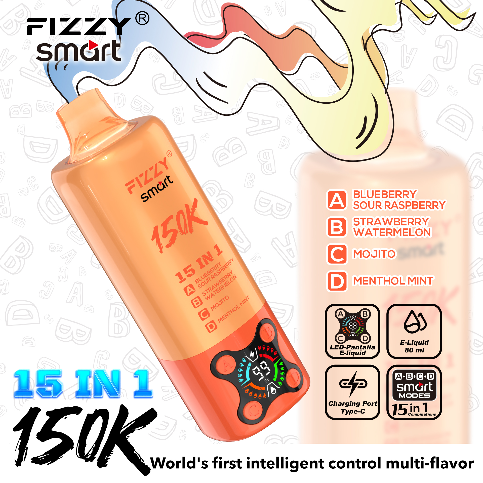 Fizzy Smart 150000 PUFFS 15 in 1 Flavor 2% 5% Nikotin Engros Engangs Vape