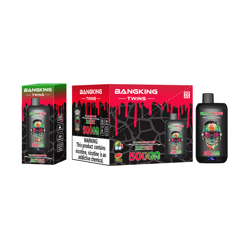 Experience Bang King Twins 50000 Puffs, the dual-flavor disposable vape with 12 exquisite combos. Featuring 650mAh rechargeable battery, LED screen, and easy horizontal mouthpiece switch, it delivers 50k long-lasting puffs with smooth dual mesh coils. Elevate your vaping joy anytime, anywhere.