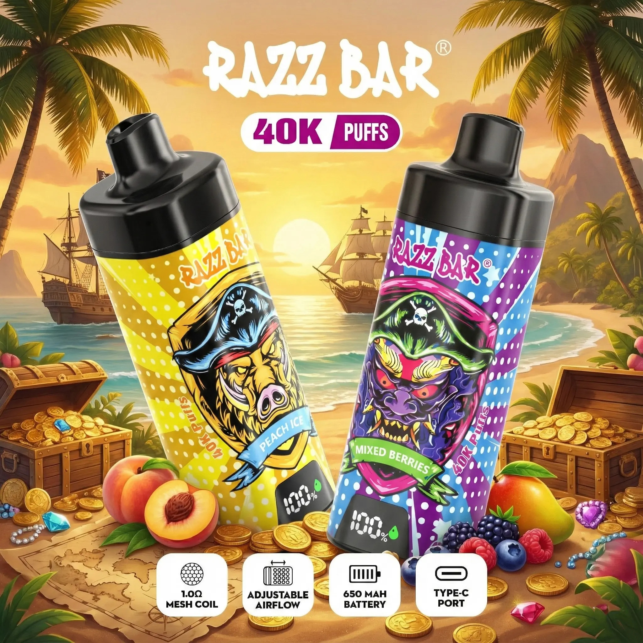 Razz bar 40000 PUFFS With Screen 2% 5% Nicotine Mesh Coil Rechargeable Battery Smart E-cigarette